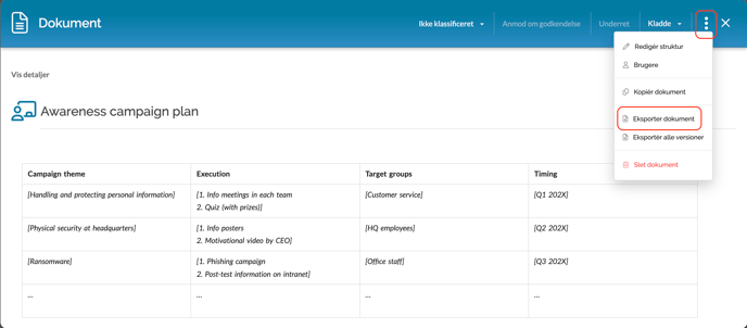 Hvis du åbner et vilkårligt dokument i Northgrc og klikke på de tre prikker i højre hjørne, og herefter eksporter dokument: