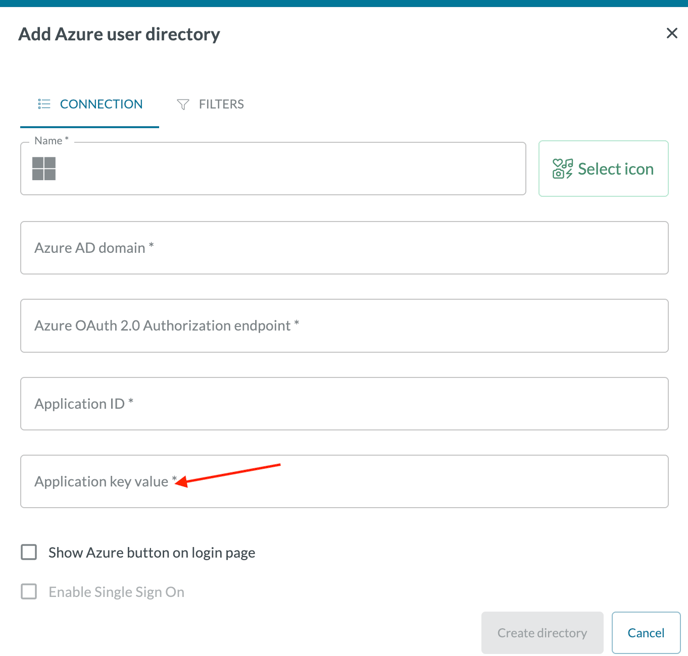 The endpoint, application ID and key fields must contain information from Azure AD. Follow the instructions in the next section to get these.