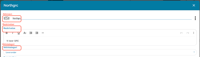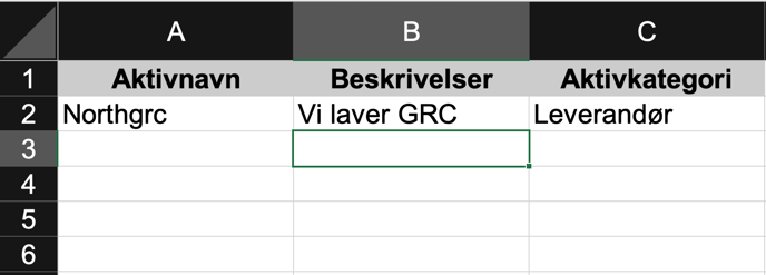 Når i uploader en excel fil skal i være opmærksomme på hvilke felter der kan blive autoudfyldt i northGRC ud fra informationerne i arket. I NorthGRC kan følgende felter udfyldes: