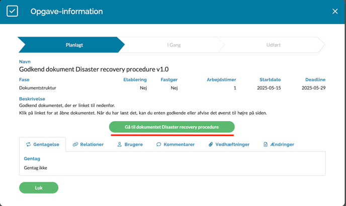 Inde i opgaven vil der være et link, som tager dig direkte til dokumentet der skal godkendes: