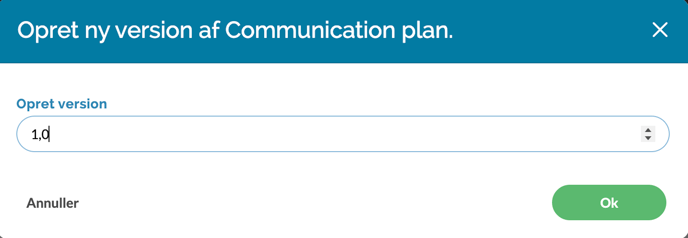Herefter skal versionen have et versionsnummer. Systemet foreslår selv 1.0, men i kan frit redigere versionsnummeret: