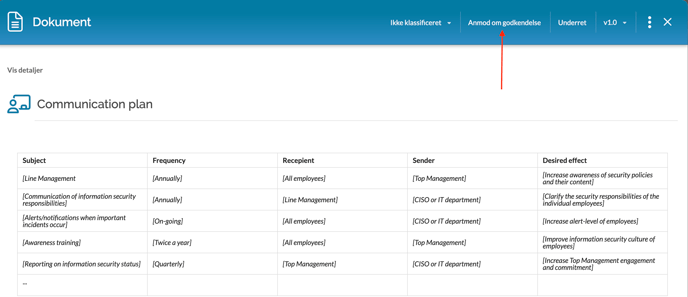 Godkendelses processen startes ved at klikke på Anmod om godkendelse:
