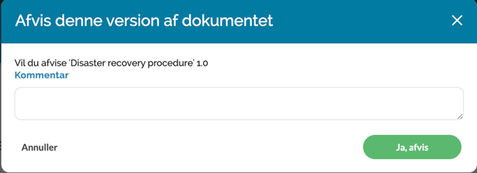 Ligemeget om der afvises eller godkendes, får godkenderen mulighed for at tilknytte en kommentar til det valg de tager:
