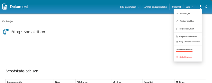 Hvis man ønsker at slette en version, kan det gøres ved at klikke på de tre prikker og herefter Slet denne version: