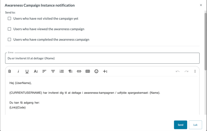 If you want to send a reminder to the recipients, you can do so by expanding the campaign, then clicking the three dots on the right-hand side and selecting Send Notification: