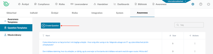 Here you will find questions that you can use in your templates. There is already a list of standard questions provided by NorthGRC, but you also have the option to create your own: