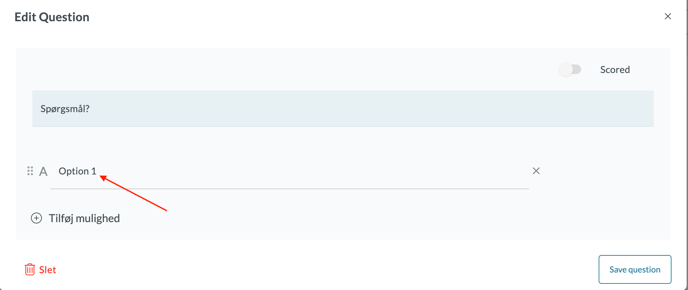 When you create a question, you can write the question and indicate whether it should be scored. If scoring is enabled, it means the question has a correct answer. If it is disabled, all questions are weighted equally: