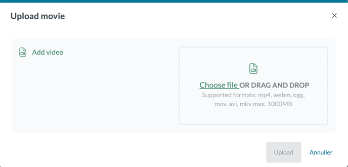 If you click on Upload, you will be given the option to upload a video file. You can either select a file using your computer’s file explorer or use drag-and-drop: