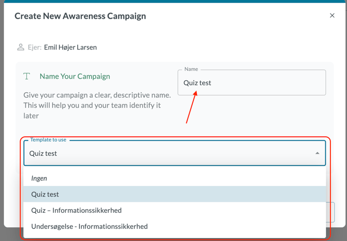 Next, the system will ask you to name the campaign and then select which template you would like to use for the campaign: