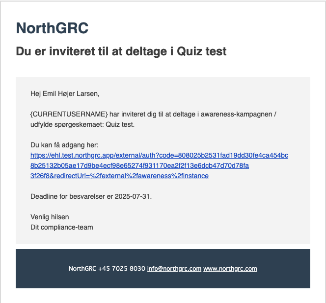 The recipients of the campaign will receive the following email with a link to the quiz: