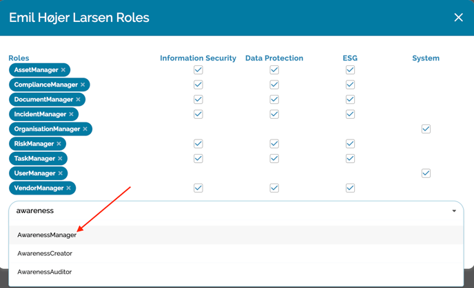 To access the Awareness module in NorthGRC, one or more of your users must have either the Awareness Manager or Awareness Creator roles. The Awareness Manager role provides access to all functions within the module.