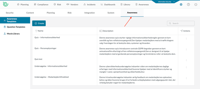 Here you will find the tabs Awareness Templates, Question Templates and Movie Library.