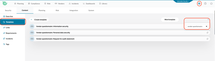 - Perform a quick search using the keyword 'Vendor questionnaire'.