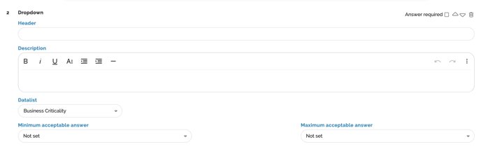 The fields can be freely edited and customized to suit your needs. If the existing text and response options align with what you want to send to your suppliers, you can also choose to keep the questionnaire as it is.