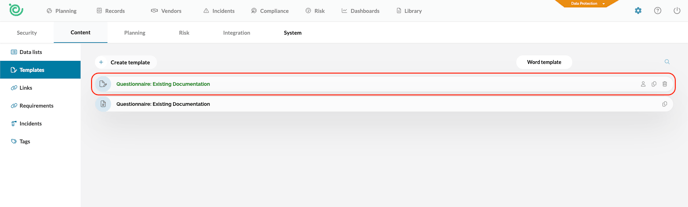 In this guide, we will go through how to edit the questionnaires that can be sent out for vendor assessments. Furthermore, the guide will explain how you can create your own questionnaires from scratch.