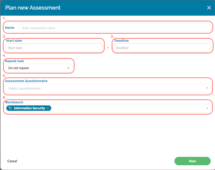 - Whether the assessment should be repeated weekly, monthly, or annually (Optional).