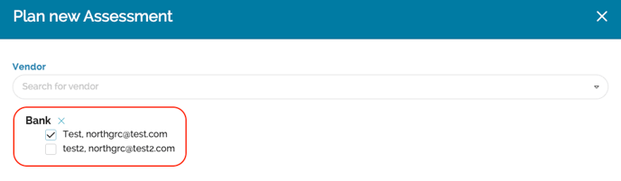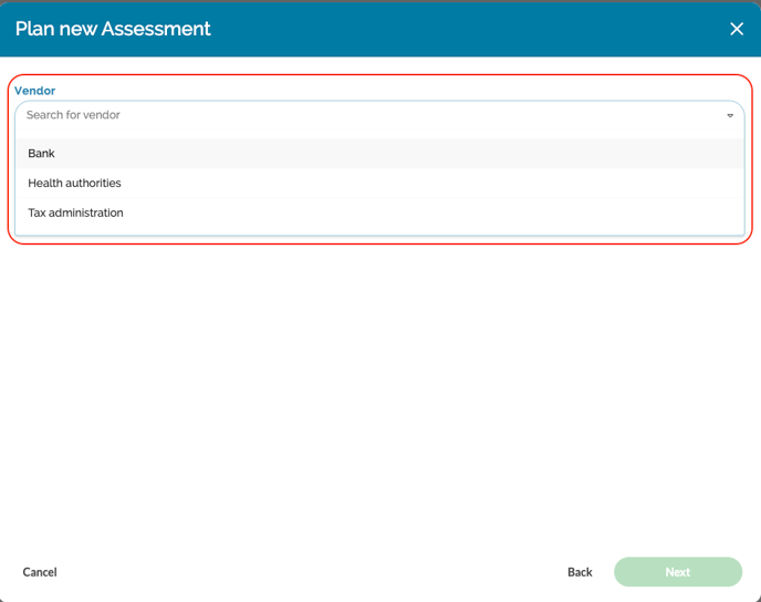 When you click "Next," you need to decide which vendor will receive the assessment questionnaire.