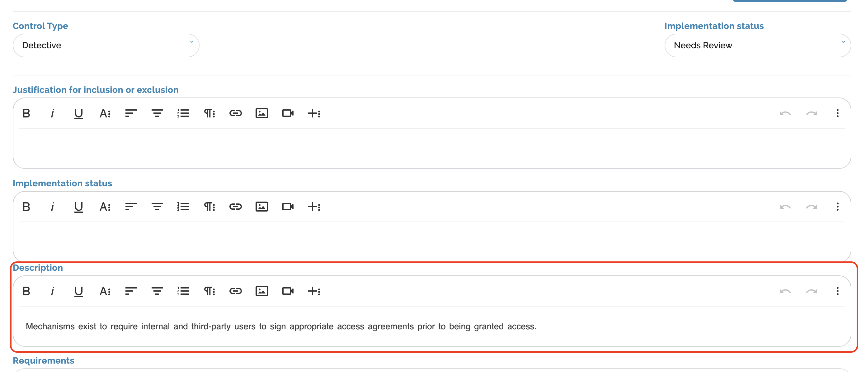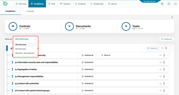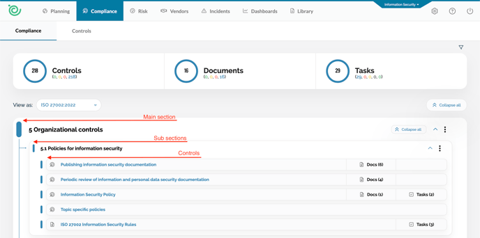This structure is based on the framework of ISO 27002:2022 and is a standard feature within the system. Controls do not necessarily have to be linked to sub-sections; they can also be directly associated with main sections.