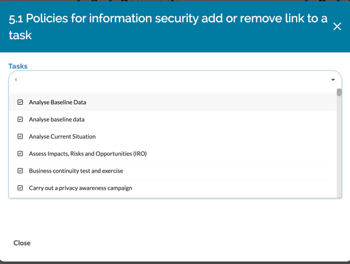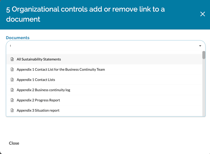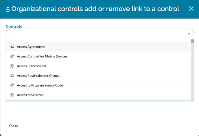 If you choose to add an existing control, task, or document, you will have the option to link to existing elements in the system: