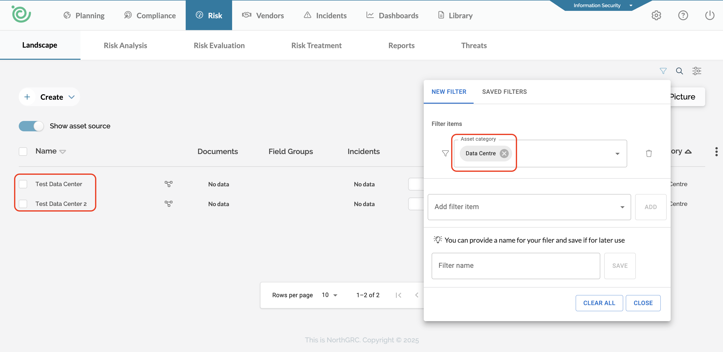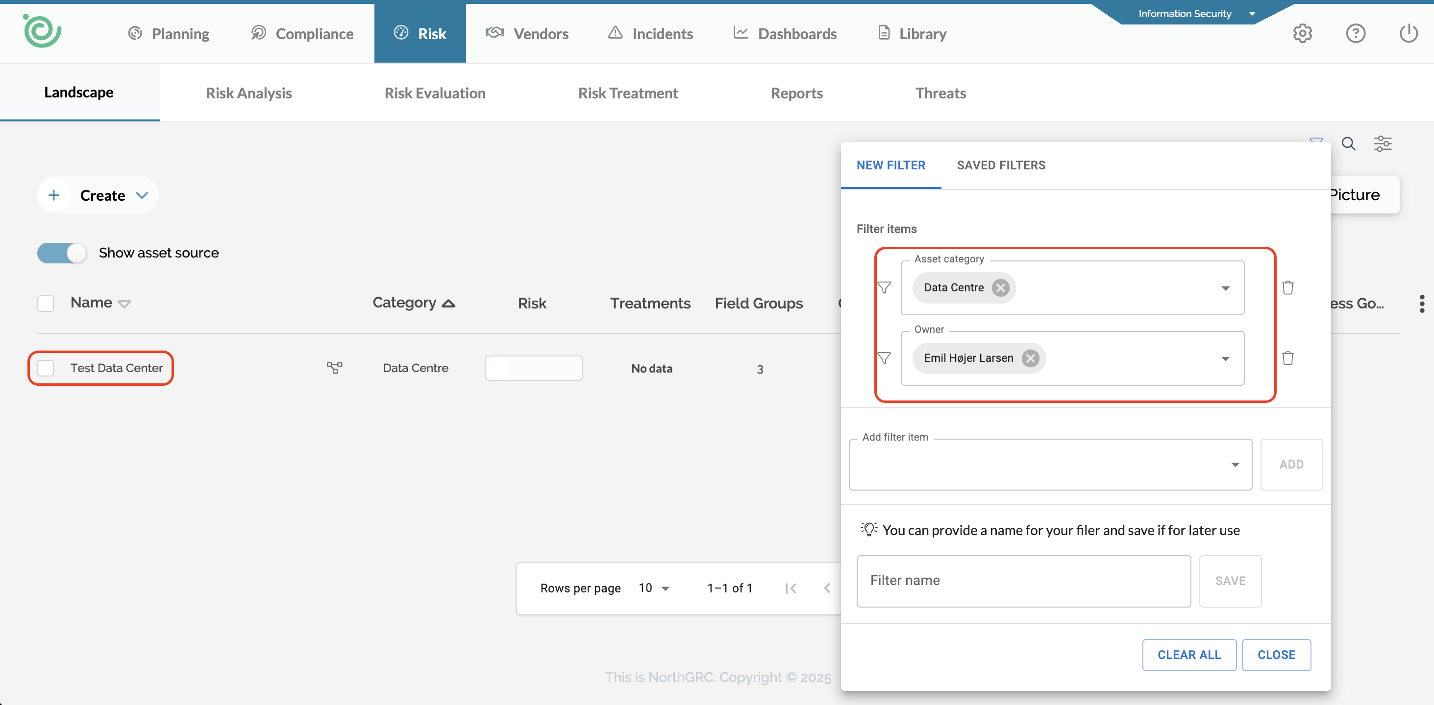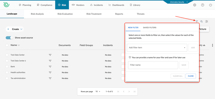 Inside the risk landscape, we have introduced a new landscape filter. This filter is designed to make it even easier to display specific assets in your landscape.
