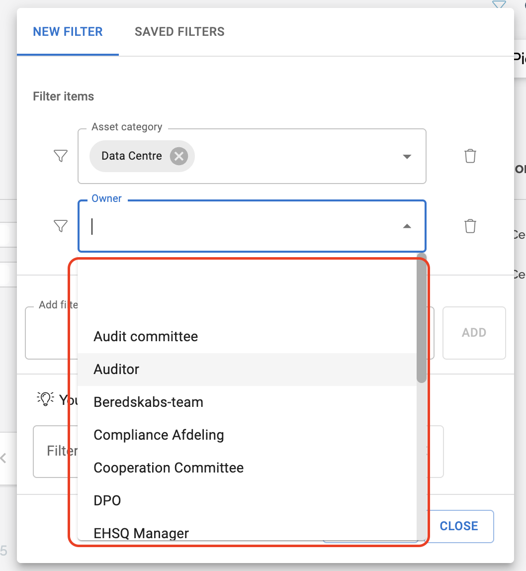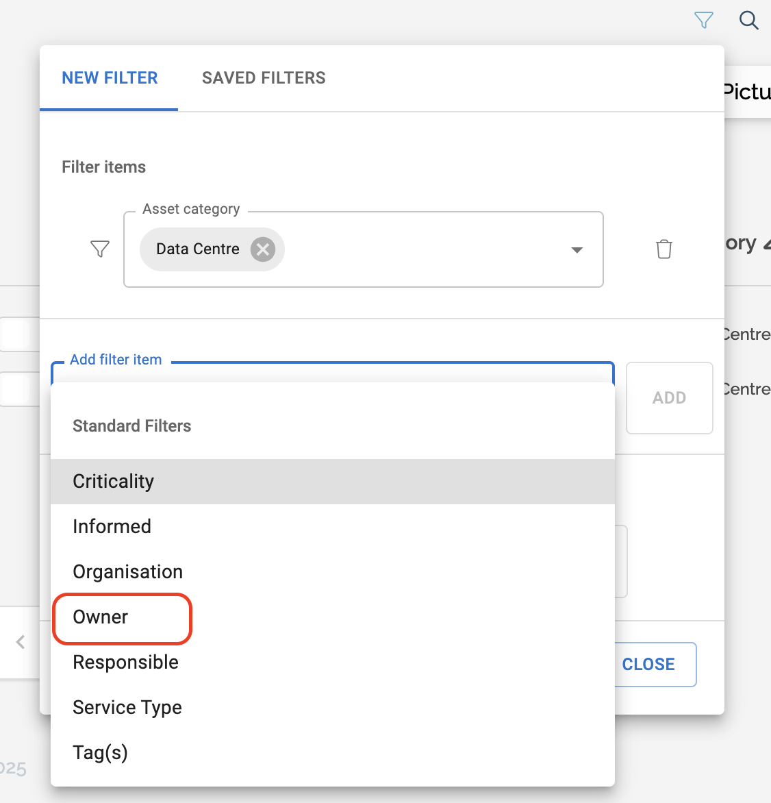 In addition to the filter we have already applied, we can now add another filter to further refine the results. In the example below, we select Owner as our next filter: