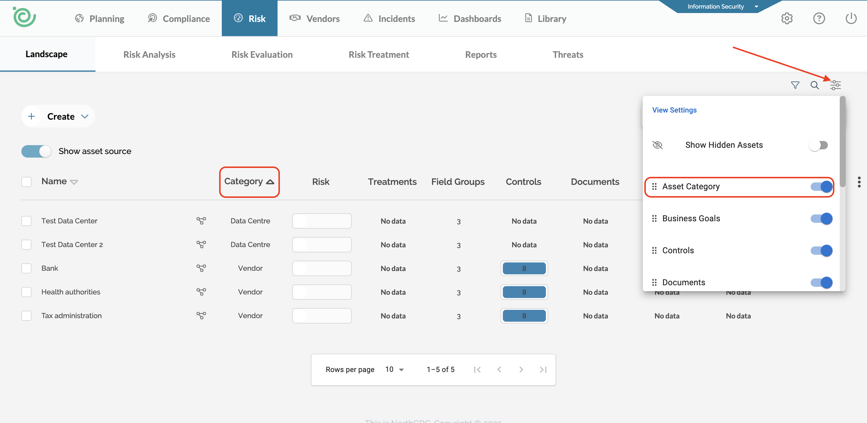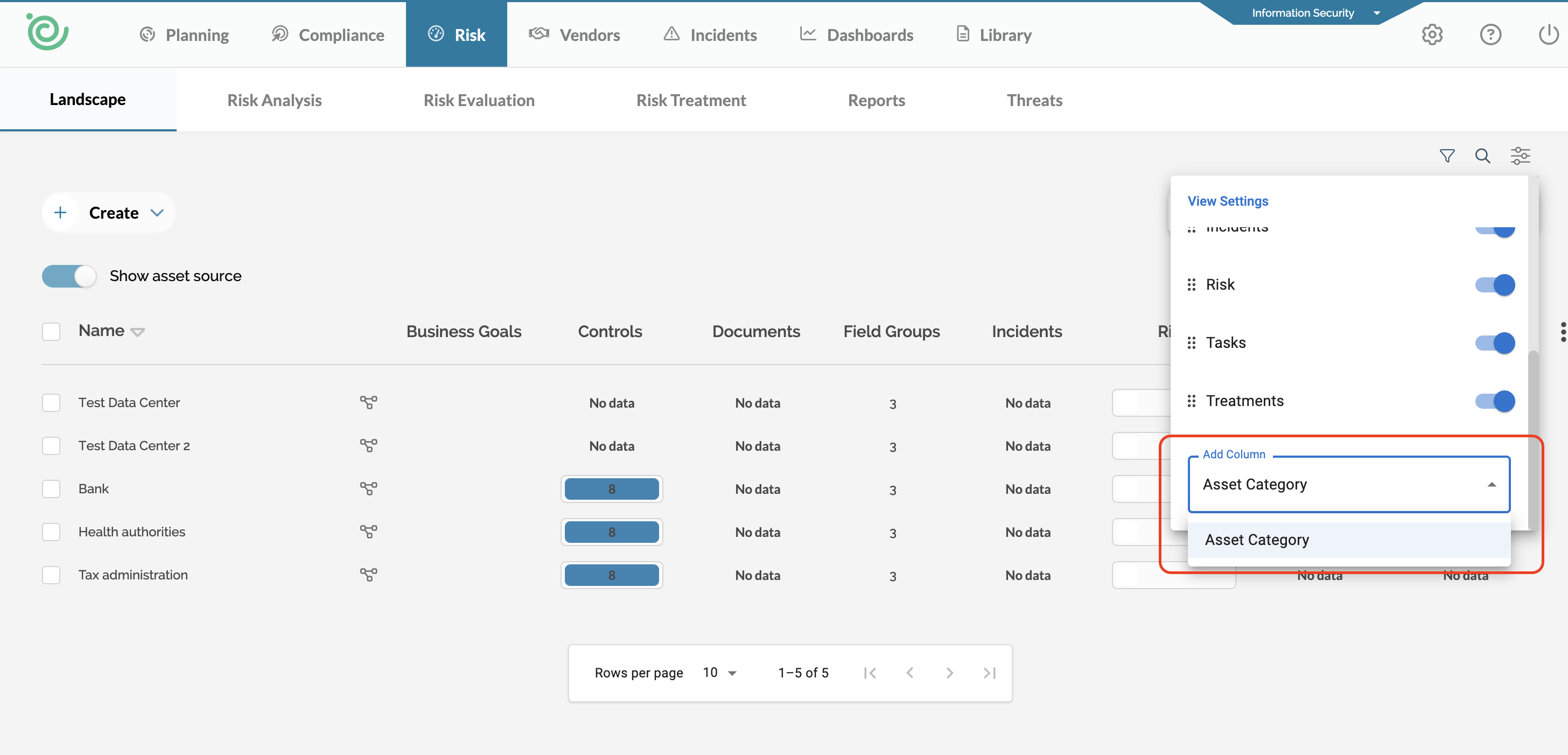 Now, you will see that Asset Category has been added to the filter. You can click on Asset Category to narrow down the specific asset category you want to view in the landscape. In this example, we select Data Centre: