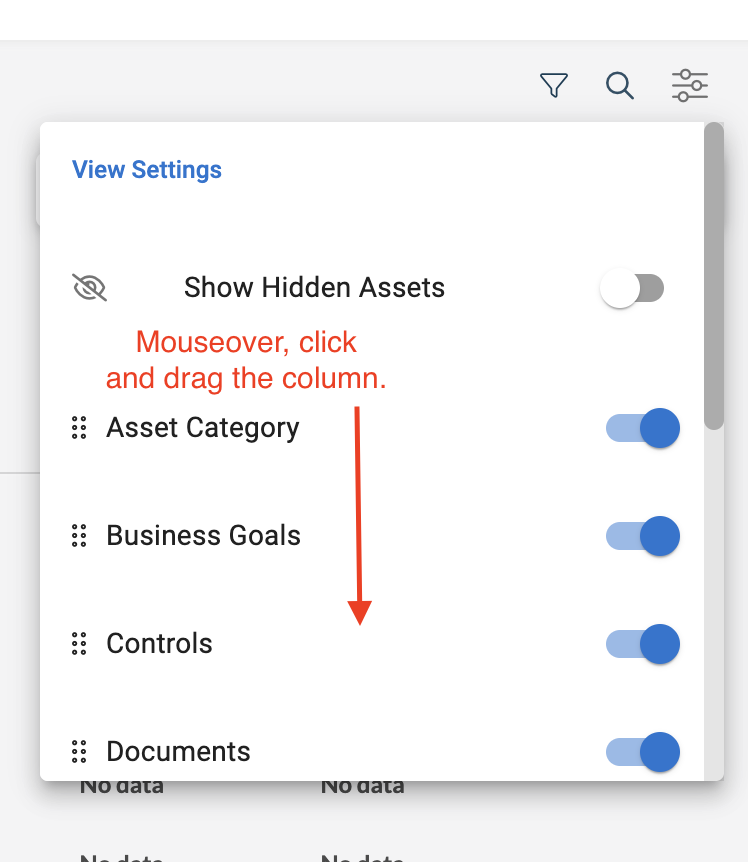 As the image above shows, you will see the toggle button for each column in the landscape. Simply uncheck the toggle button the remove, or add a column.