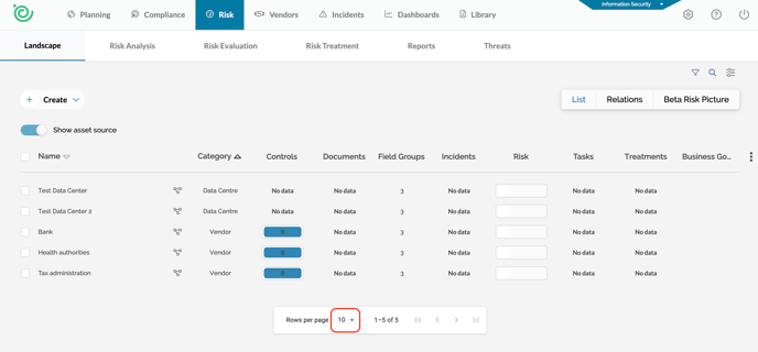 A small, but welcome addition to the risk landscape, it the ability to increase the number of shown assets per page.