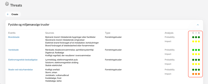 In earlier versions, threats got one combined assessment for impact and one for probability. The assessments have been split up, so you can have individual assessments for confidentiality, integrity and availability. Per default, C, I and A all have the same value, but you can change it if you want. Remember that changing a threat does not impact your risk - it impacts the information you are presented with when analyzing risk.
