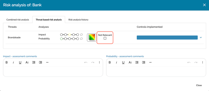 If certain threats are not relevant for a certain assset, you can mark them as "not relevant" when you perform a threat based risk analysis.