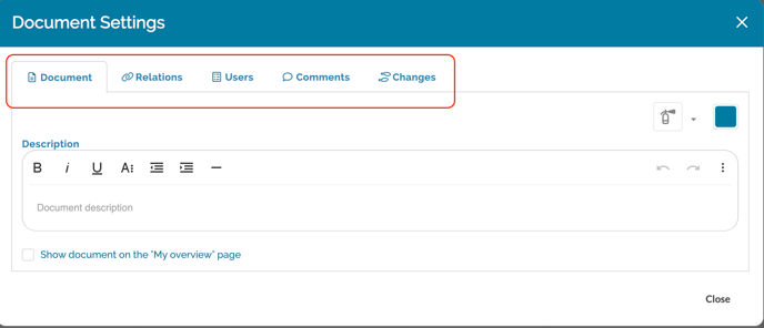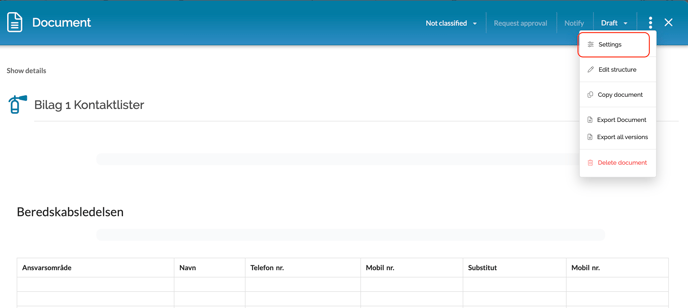 By clicking the three dots you will now find the settings for the document in this menu:
