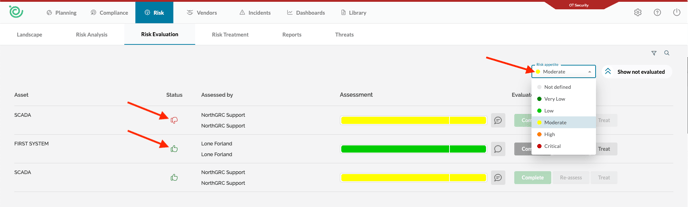 This will show if the risk of an assessment is within your risk appetite, or if the risk exceeds the appetite you have defined. You can use this to easily identify what risks should be treated, and what should be accepted.