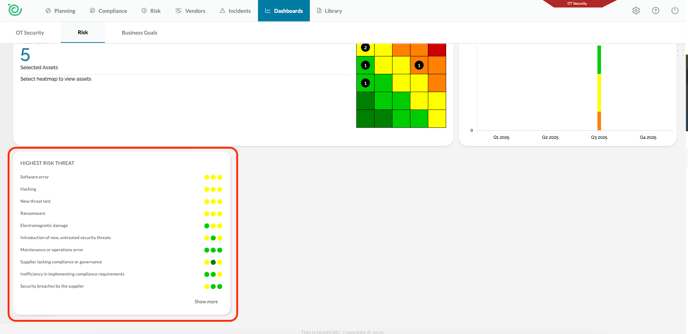 A new risk Dashboard widget have been added, to show you the highest assessed threats in the specific workbench. You will find the new widget under Dashboard > Risk: