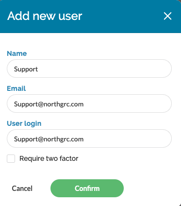 When a user is created she will receive a login by email. Logged in, she will be able to work with the tasks, documents and controls assigned to her and/or her team(s). This means that not all users have access to the same content or pages in NorthGRC. It is not necessary to grant manager roles in order for a user to access her own tasks, controls and documents.
