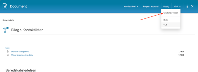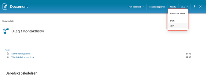 The last button at the bottom of the screen, called Approve now, can be used to approve the version immediately. This requires that you are the owner of the document or have the Document Manager role.