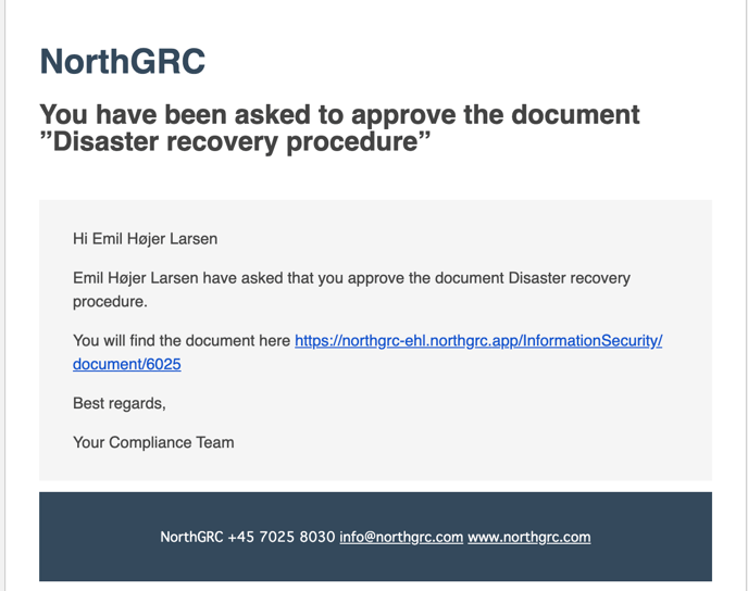 In NorthGRC, it is possible to create a version of a document and request that one or more users approve it.