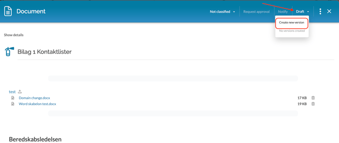 The draft is the first 'version' of the document, which can be edited. Once you are done editing, you can create a version by clicking on Draft and then Create new version: