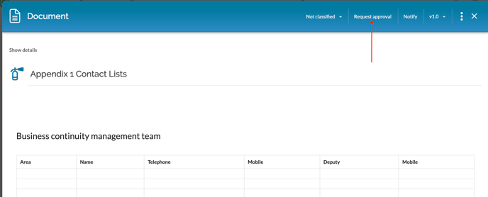 The approval process is started by clicking Request approval: