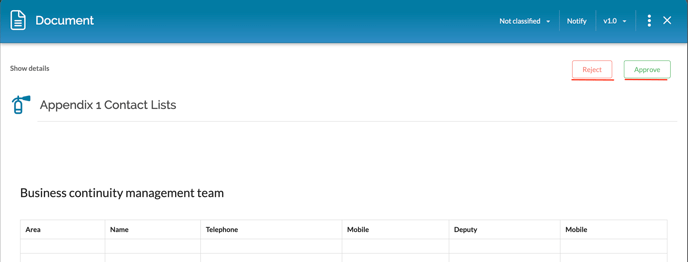 Approval of documents
