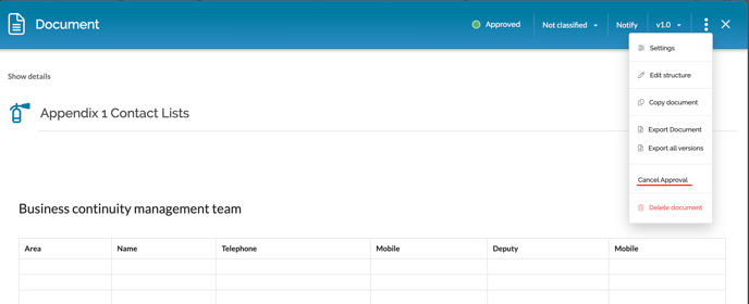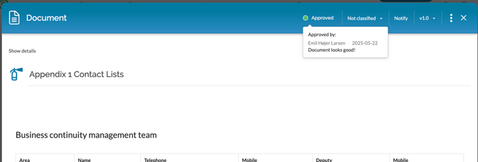 When a version of the document has been created, it can be sent for approval by one or more people.